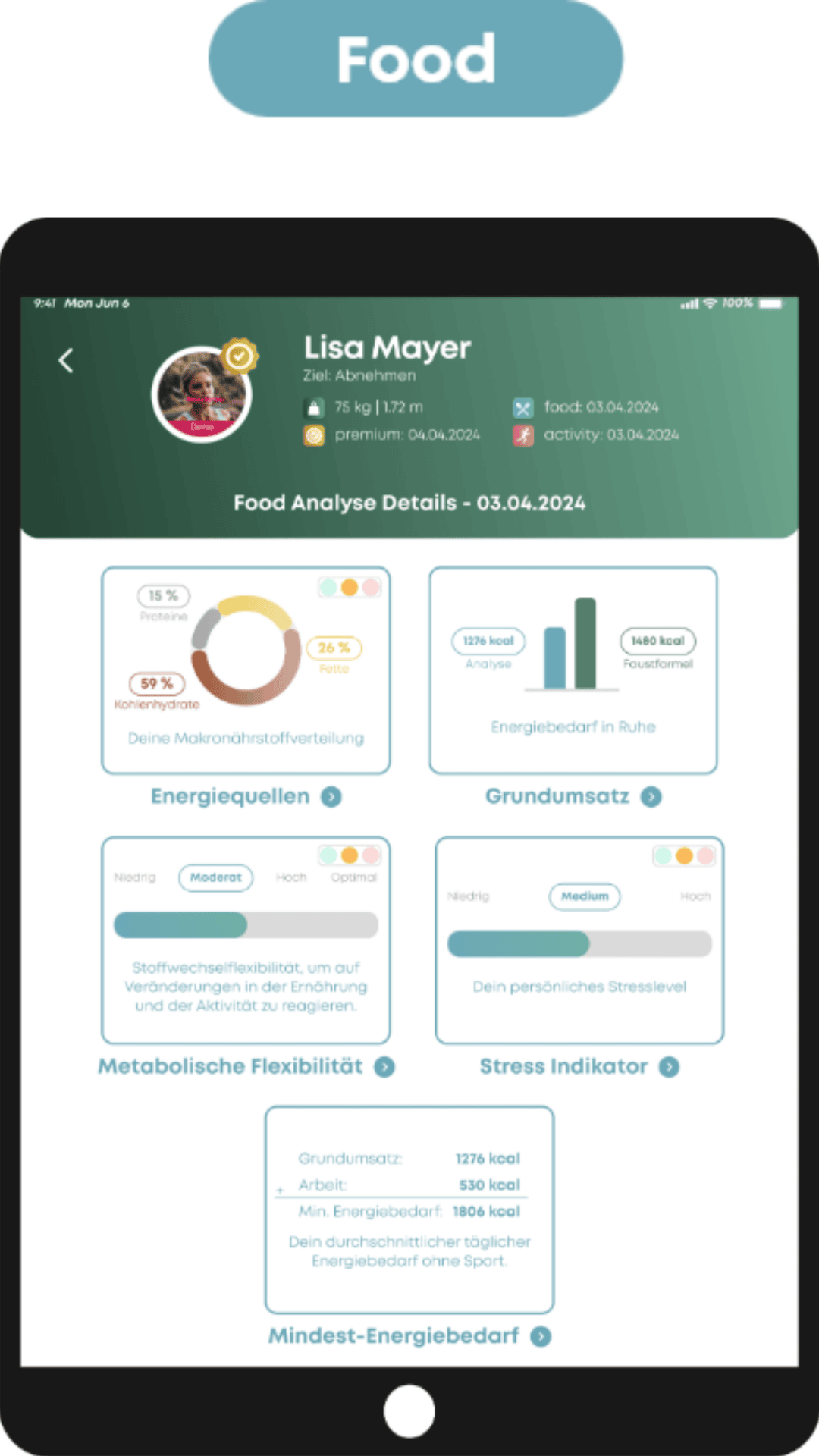 • Ziel: Bestimmung des individuellen Stoffwechselzustands zur Optimierung von Ernährung und Diätplänen.